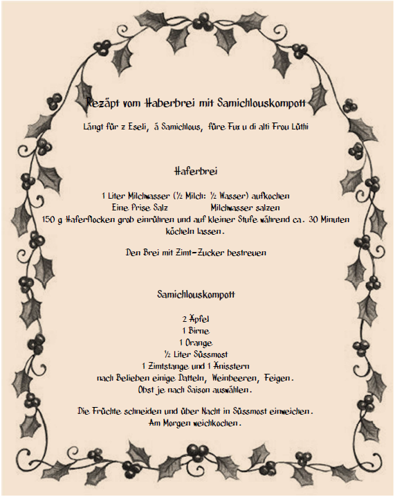 Hie am Samichlous syni Rezäpt. aber pssst es isch streng gheim!